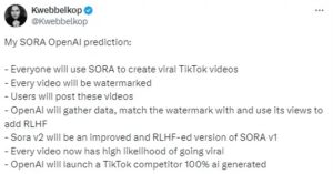 Sora問世後,網上出現了許多有關OpenAI未來計劃的猜測。AI內容創作者“Kwebbelkop”指出,OpenAI將通過收集用戶發布的Sora視頻數據來進行模型微調,使Sora變得更加強大。同時,OpenAI還將通過收集這些視頻的觀看數據來增強Sora的強化學習自人類反饋算法,這意味著每個人都能輕鬆創造出社交媒體熱門視頻。而這一切只是未來的開始。